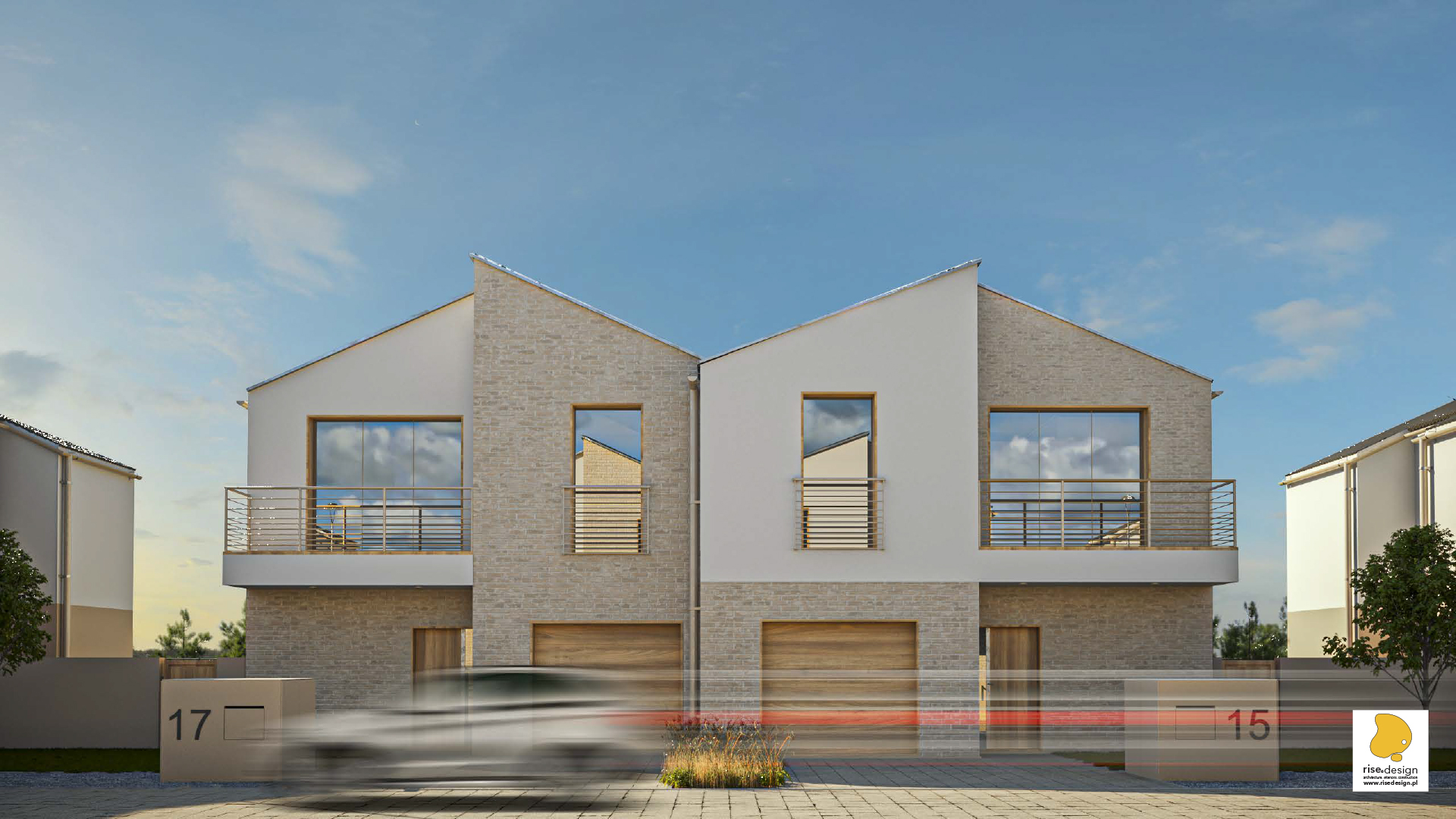 W ramach inwestycji występują budynki w 3 typach ( A, B, C) w tym A i B także w wersji lustrzanego odbicia (A’ i B’).